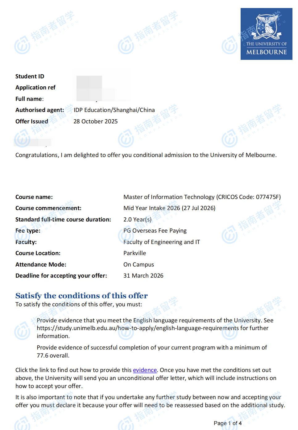 墨爾本大學(xué)信息技術(shù)碩士研究生offer一枚