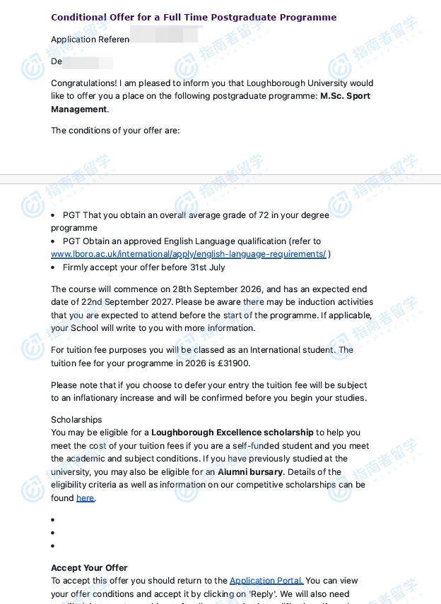 拉夫堡大學(xué)體育管理理學(xué)碩士研究生offer一枚