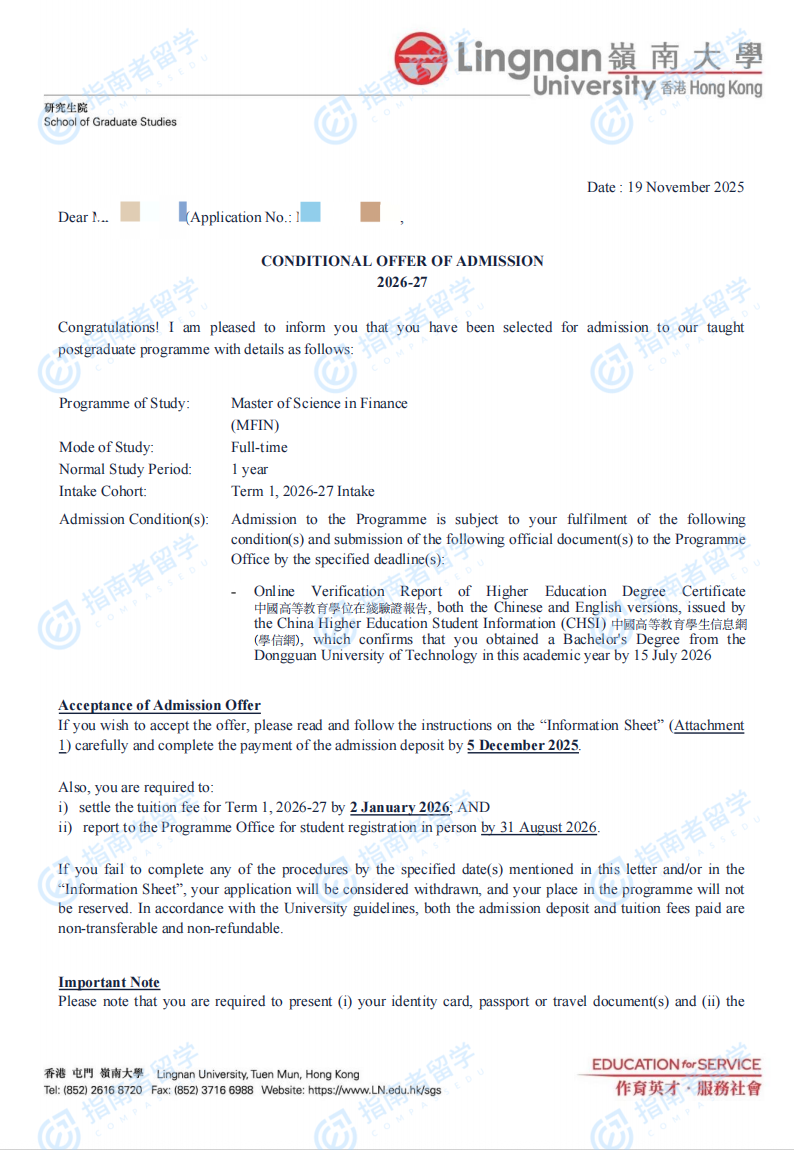香港嶺南大學(xué)金融學(xué)理學(xué)碩士研究生offer一枚