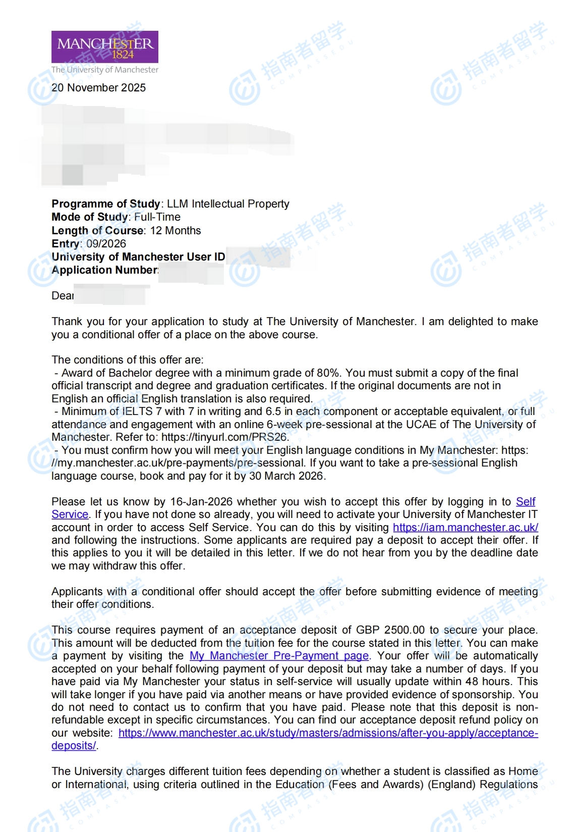 曼徹斯特大學(xué)知識(shí)產(chǎn)權(quán)法法學(xué)碩士研究生offer一枚