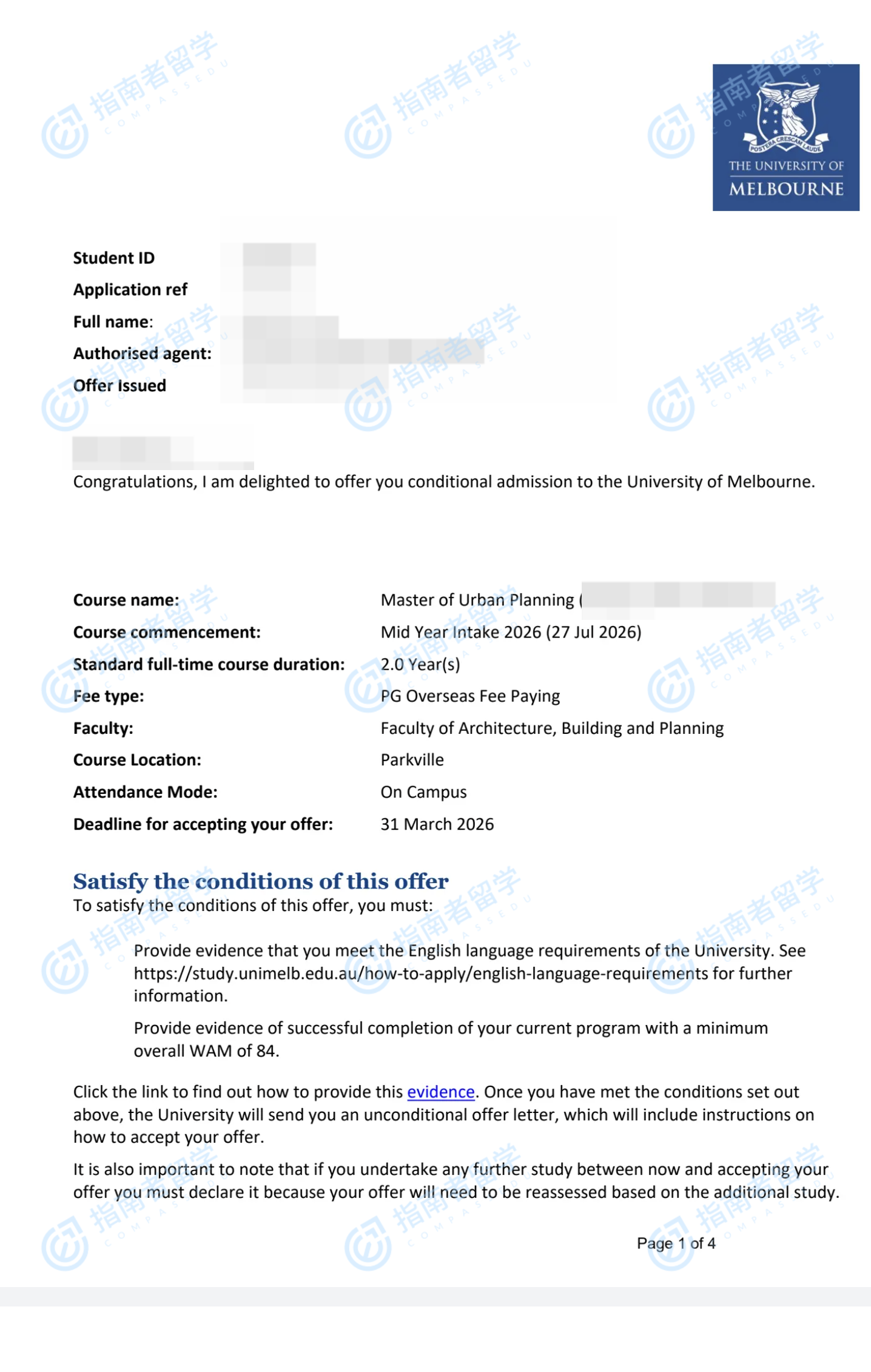 墨爾本大學(xué)城市規(guī)劃碩士研究生offer一枚