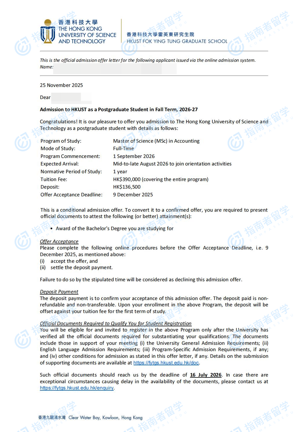 香港科技大學(xué)會(huì)計(jì)學(xué)理學(xué)碩士研究生offer一枚