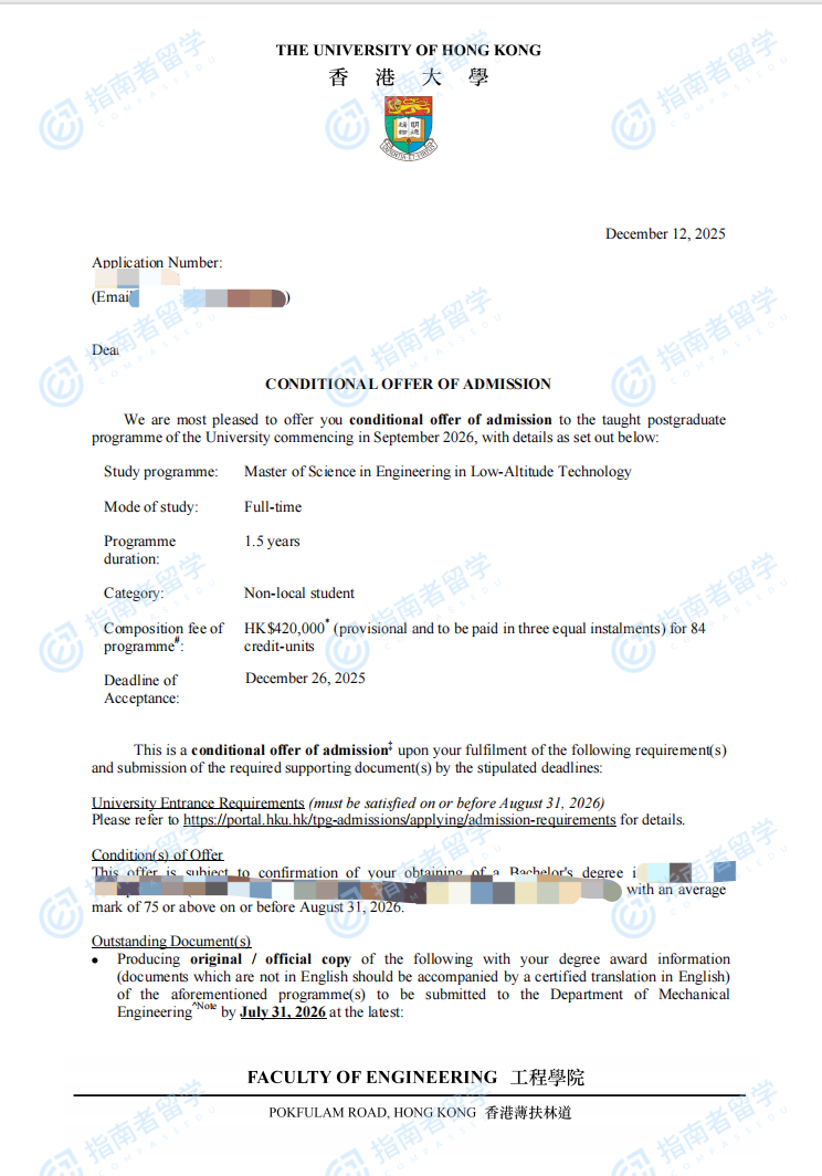 香港大學(xué)低空科技(工程)理學(xué)碩士研究生offer一枚