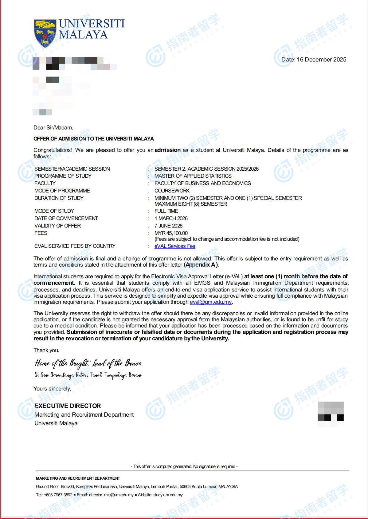 馬來亞大學(xué)應(yīng)用統(tǒng)計學(xué)碩士研究生offer一枚