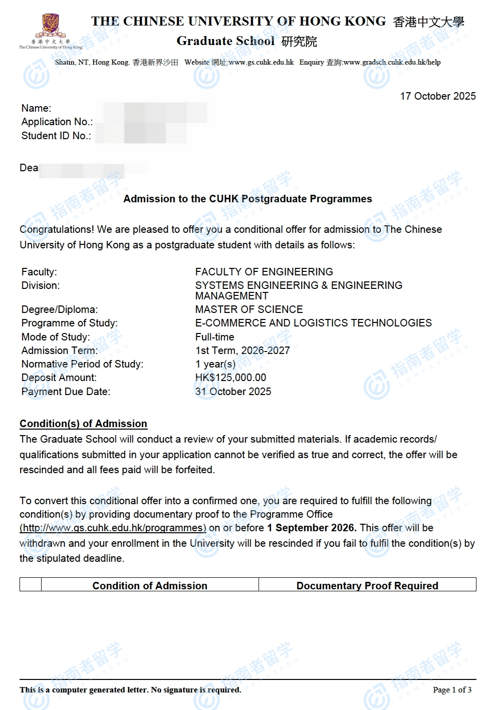 香港中文大學(xué)電子商務(wù)與物流技術(shù)理學(xué)碩士研究生offer一枚