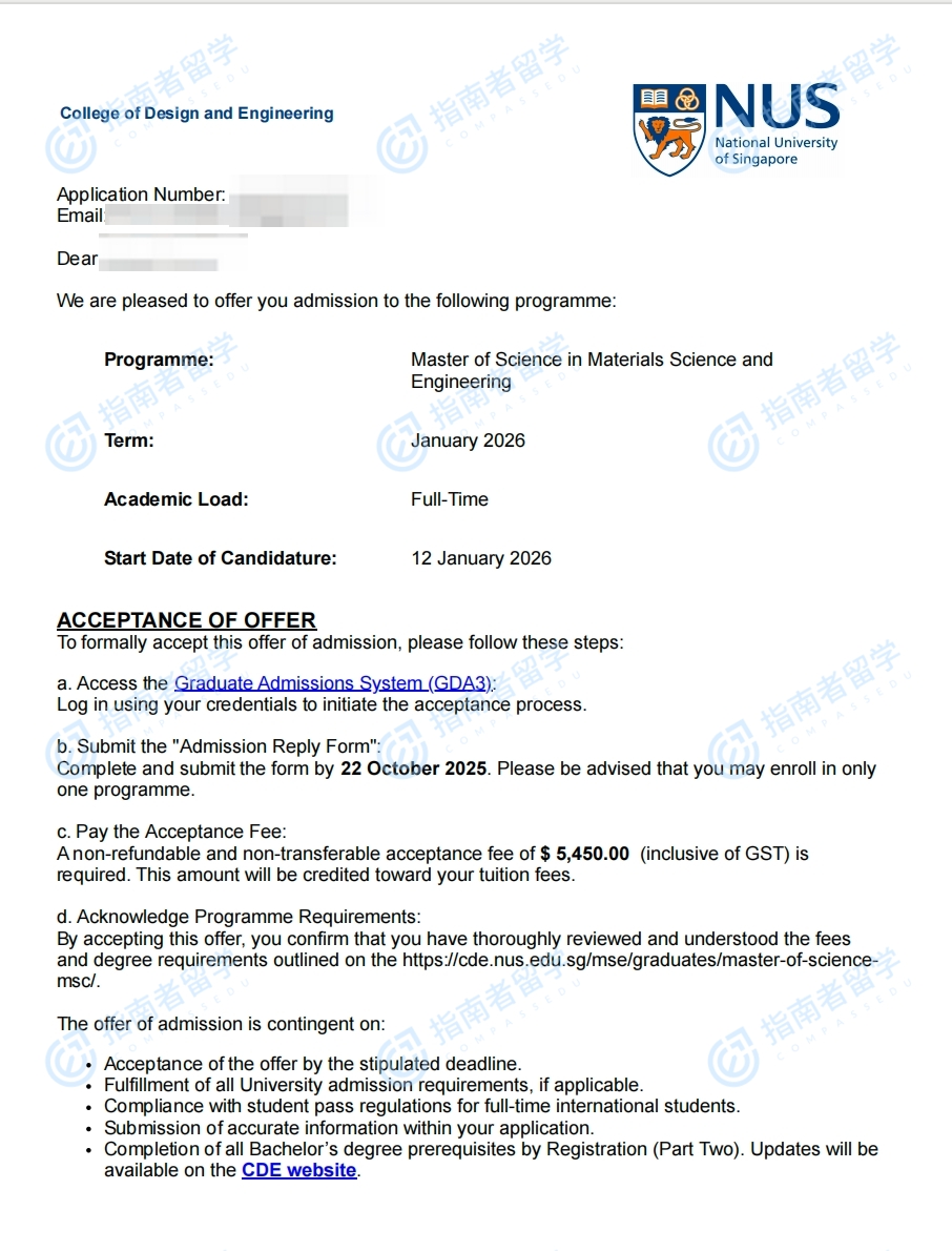 新加坡國立大學(xué)材料科學(xué)與工程理學(xué)碩士研究生offer一枚