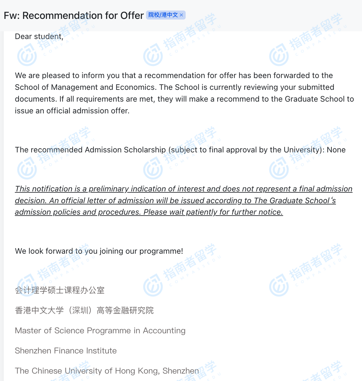 香港中文大學(xué)會(huì)計(jì)學(xué)理學(xué)碩士(CUHK-Shenzhen)研究生offer一枚