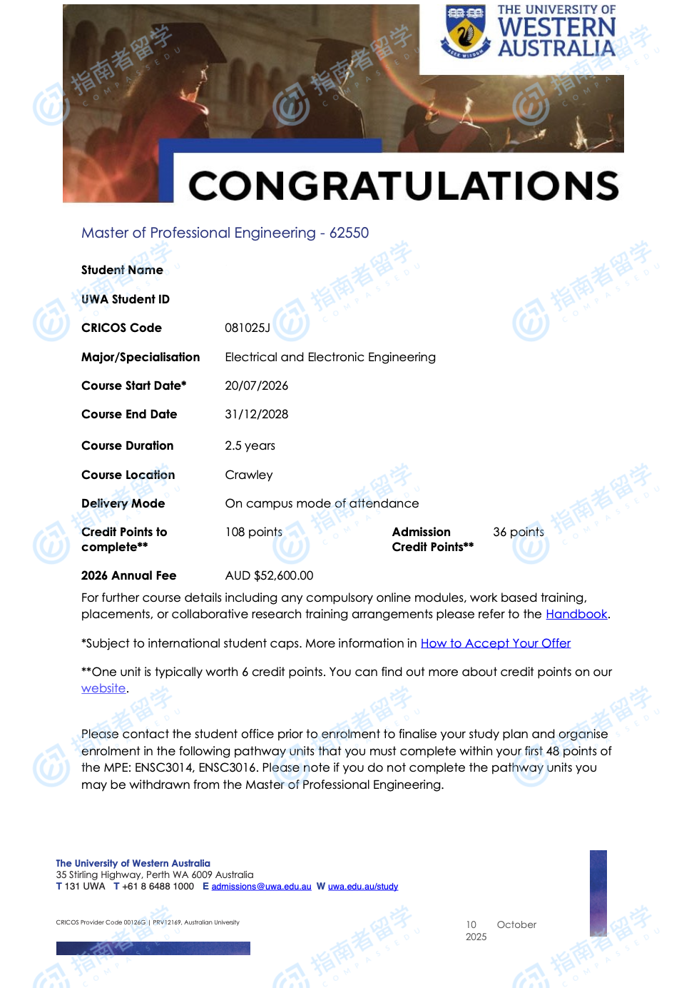 西澳大學(xué)專業(yè)工程碩士研究生offer一枚