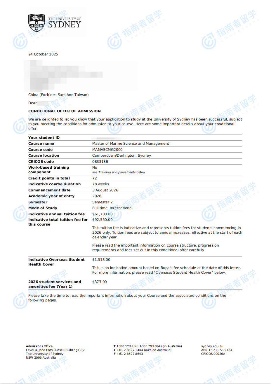悉尼大學(xué)海洋科學(xué)與管理碩士研究生offer一枚