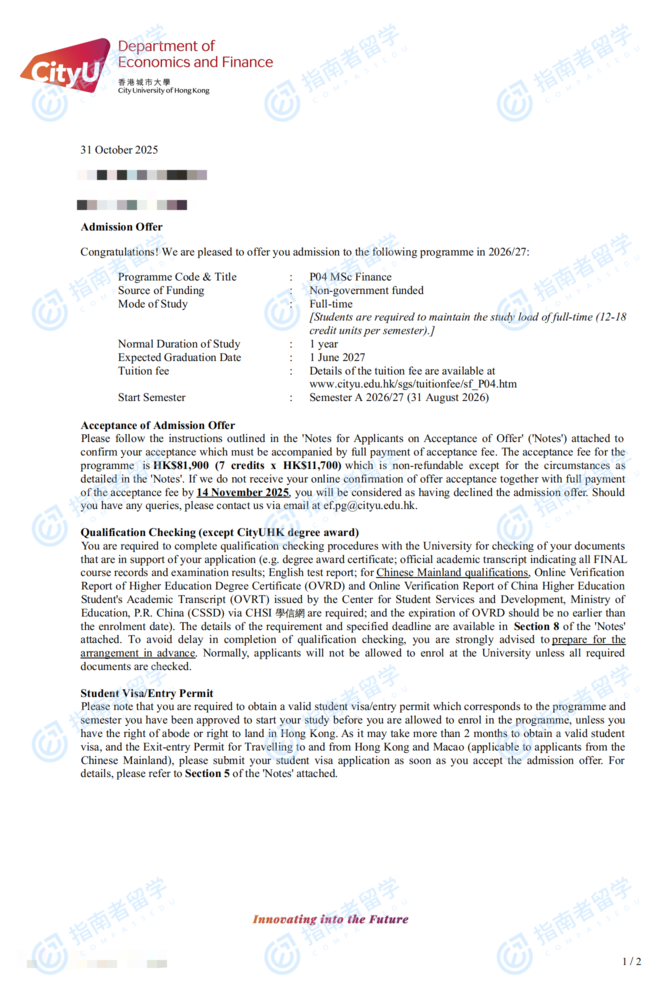 錄取學校 香港城市大學 香港城市大學申請手冊