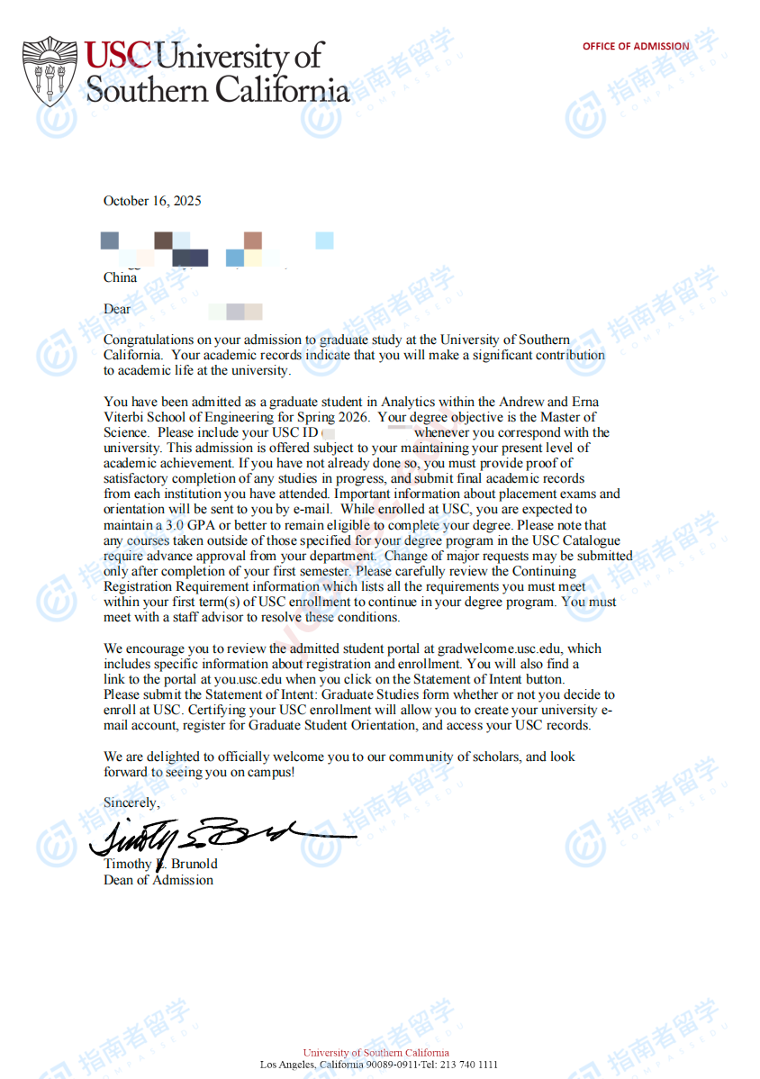 南加州大學(xué)分析學(xué)碩士研究生offer一枚