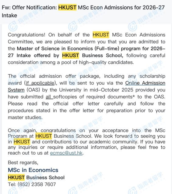香港科技大學(xué)經(jīng)濟學(xué)理學(xué)碩士研究生offer一枚