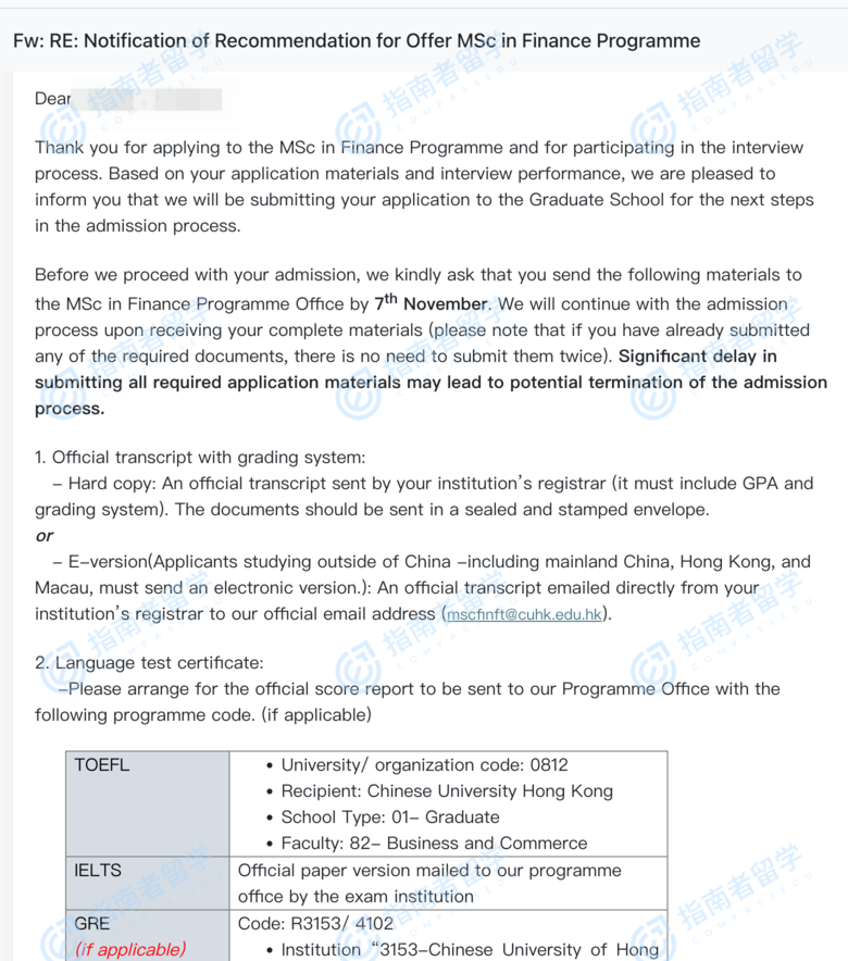 香港中文大學(xué)金融學(xué)理學(xué)碩士研究生offer一枚