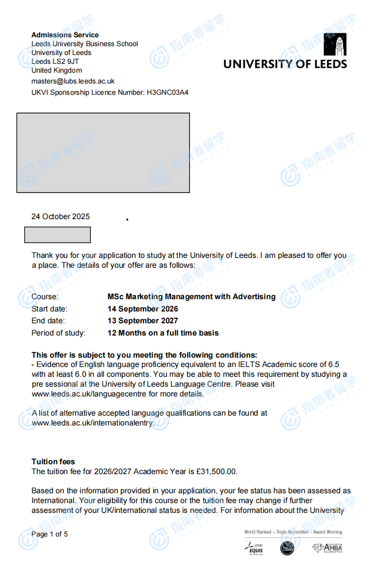 利茲大學營銷管理與廣告理學碩士研究生offer一枚