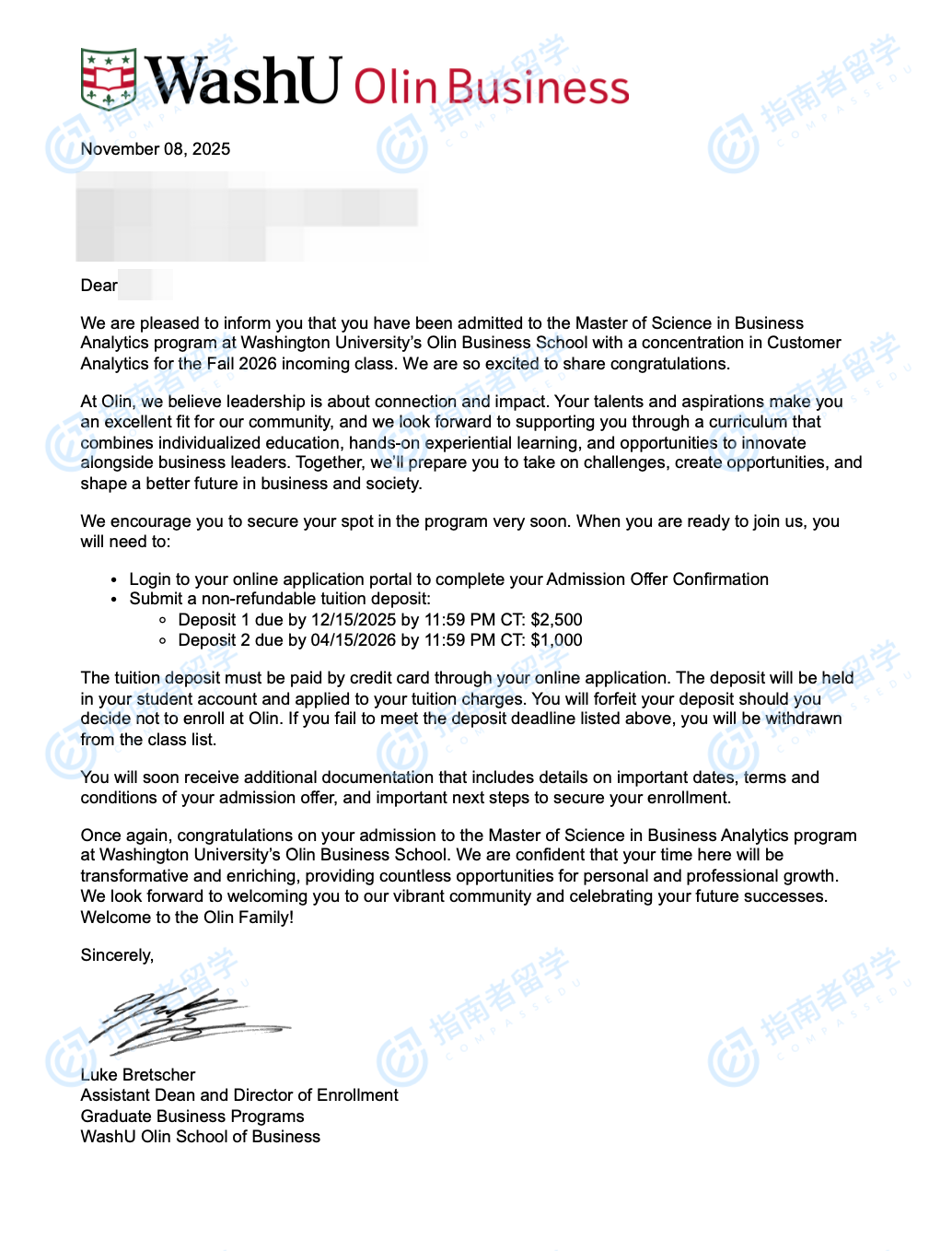 圣路易斯華盛頓大學商業(yè)分析碩士研究生offer一枚