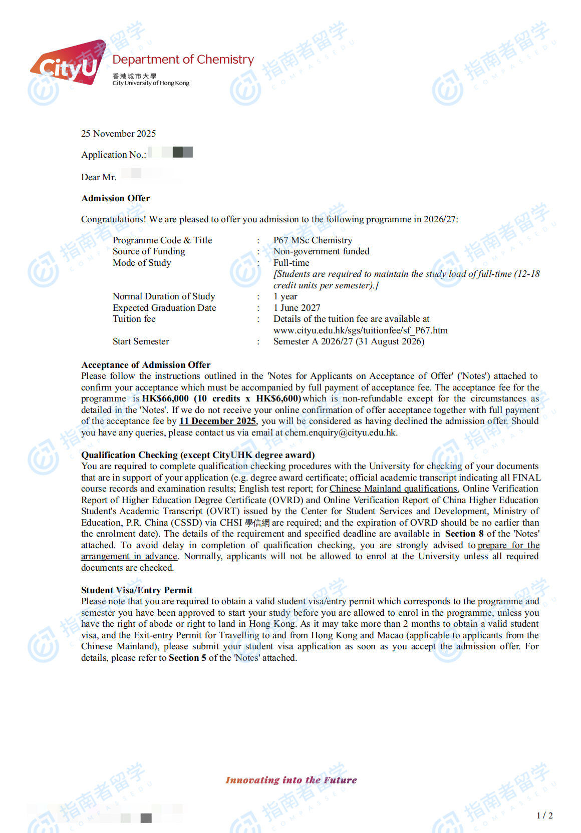 香港城市大學(xué)化學(xué)理學(xué)碩士研究生offer一枚
