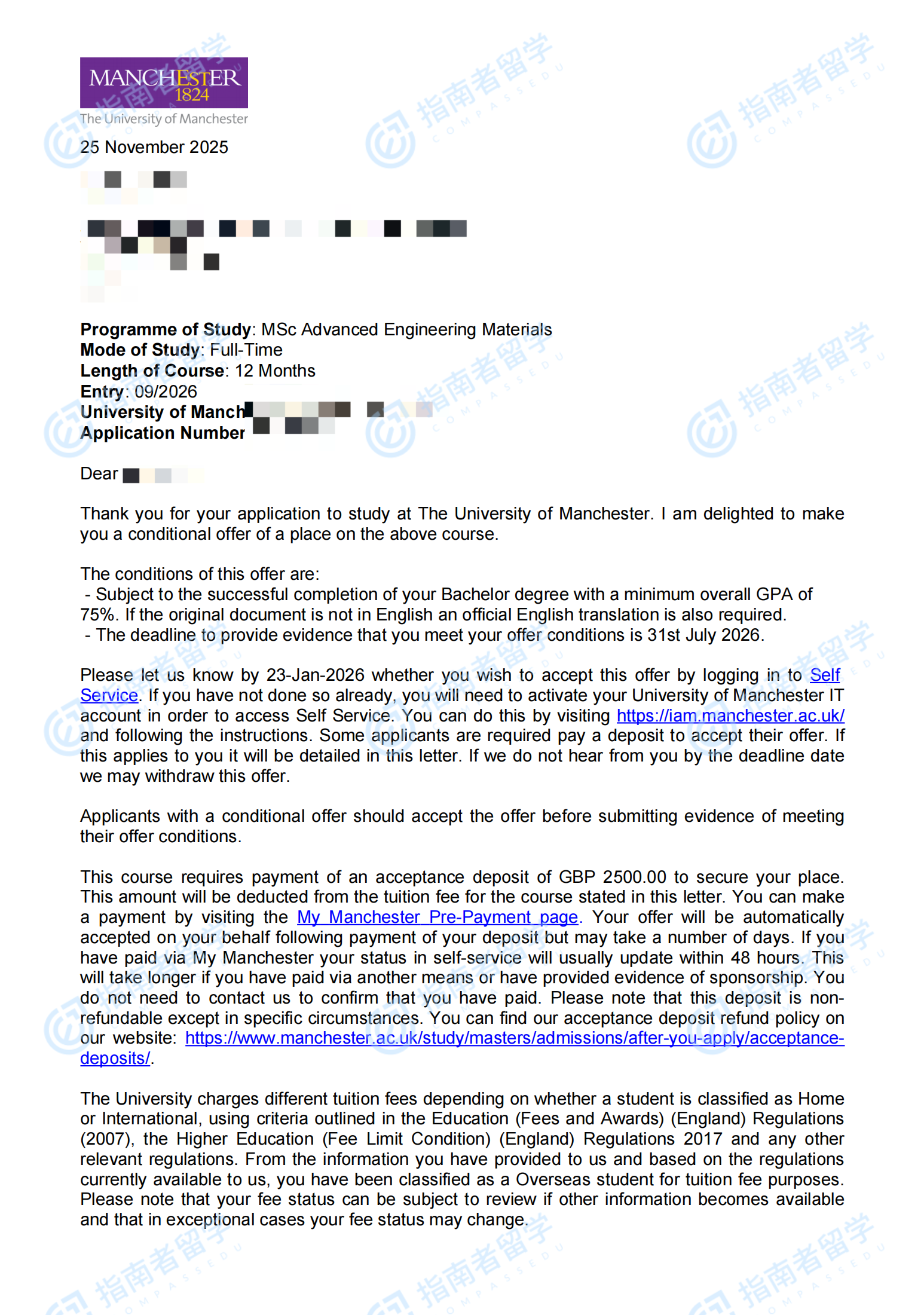 曼徹斯特大學(xué)高級工程材料理學(xué)碩士研究生offer一枚