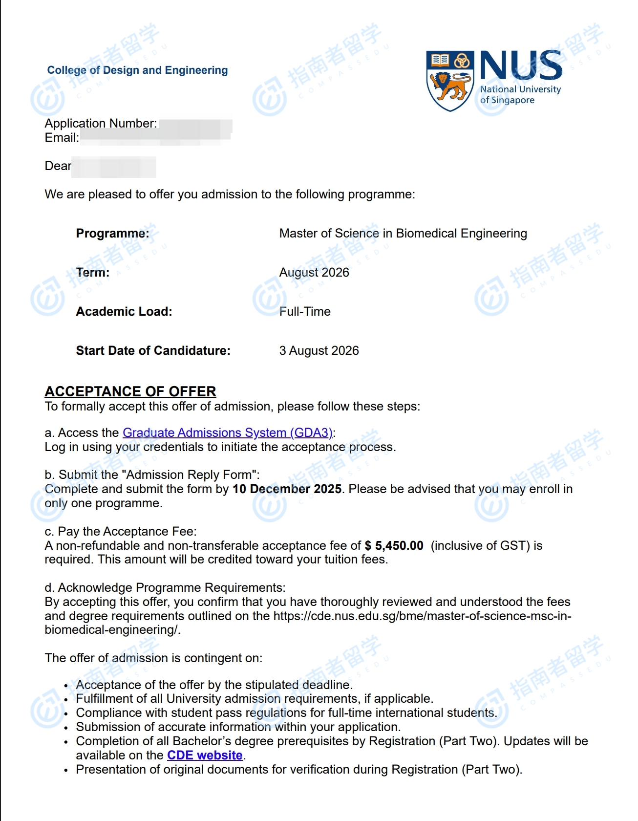 新加坡國立大學生物醫(yī)學工程理學碩士研究生offer一枚