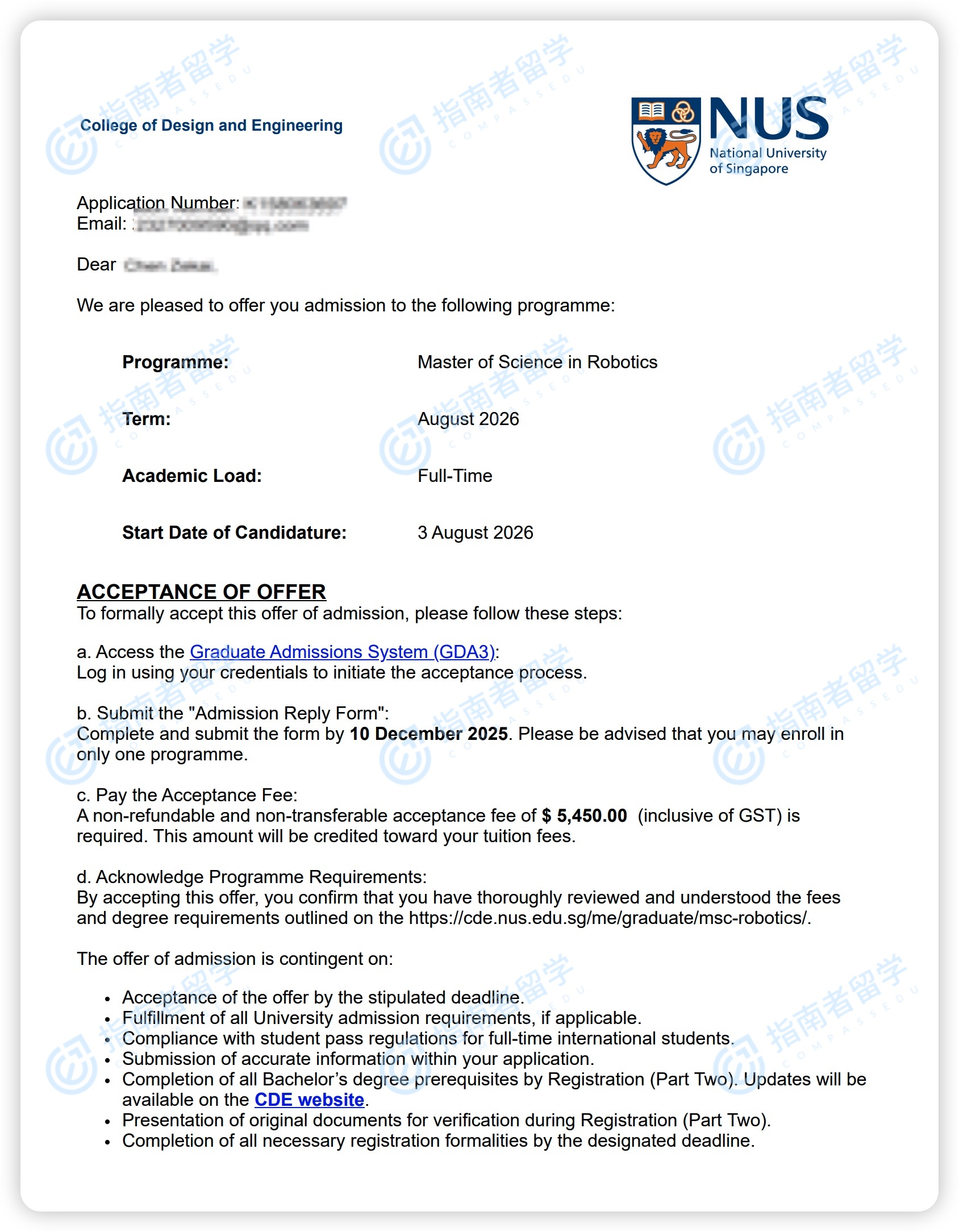 新加坡國立大學(xué)機(jī)器人學(xué)理學(xué)碩士研究生offer一枚