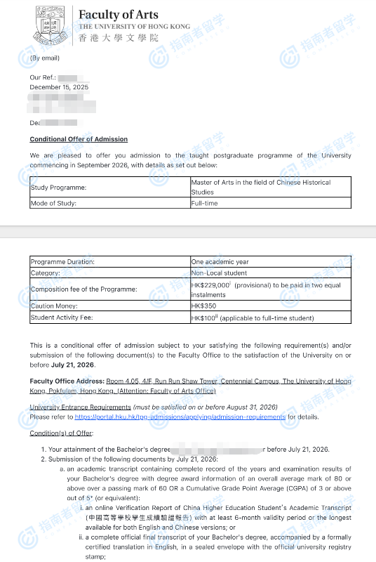 香港大學(xué)中國(guó)歷史研究文學(xué)碩士研究生offer一枚