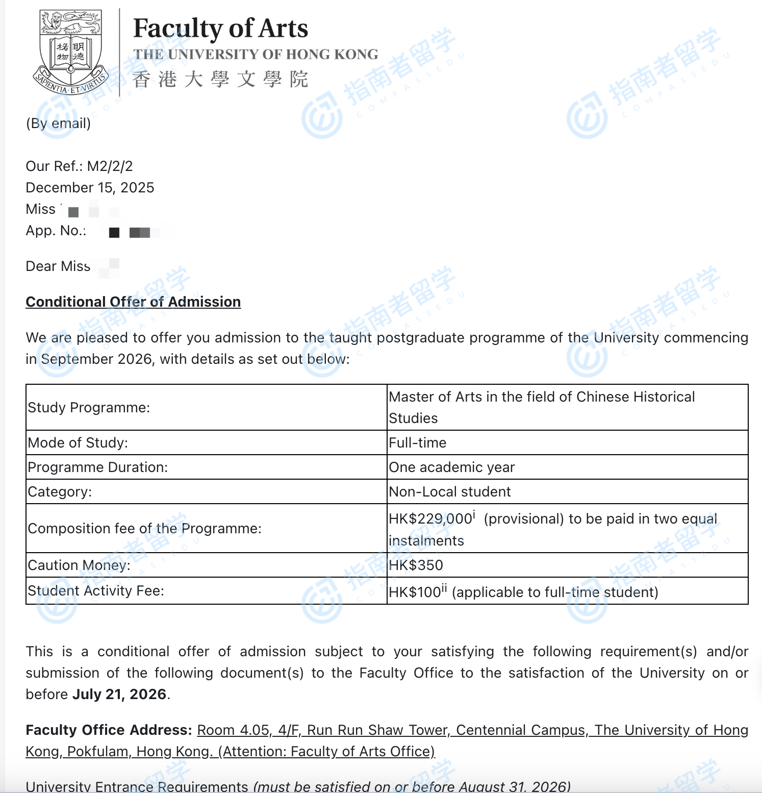 香港大學(xué)中國歷史研究文學(xué)碩士研究生offer一枚