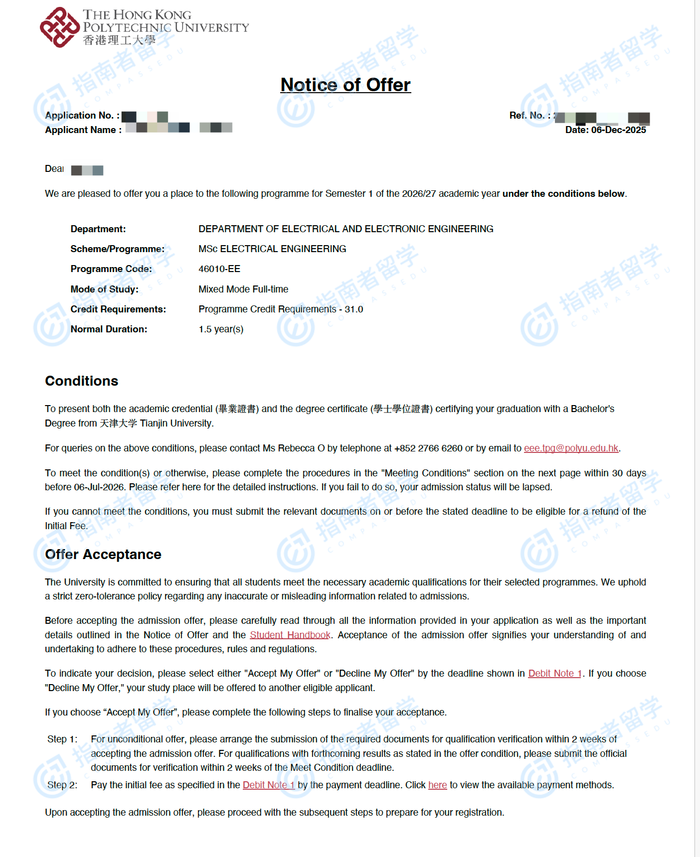 香港理工大學(xué)電機(jī)工程學(xué)理學(xué)碩士研究生offer一枚