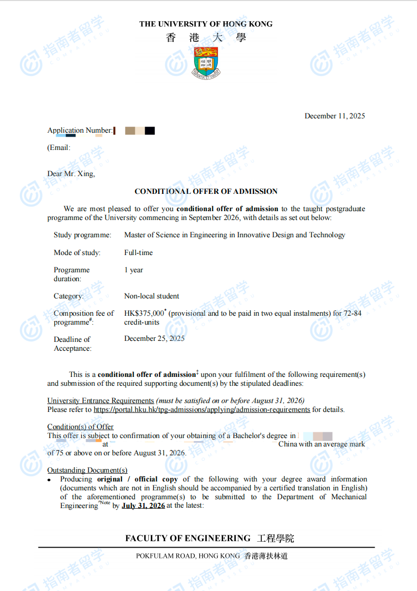 香港大學創(chuàng)新設計與科技(工程)理學碩士研究生offer一枚