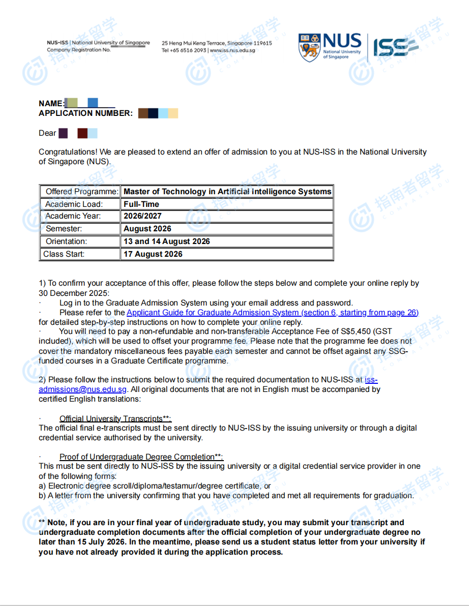 新加坡國立大學(xué)人工智能系統(tǒng)科技碩士研究生offer一枚