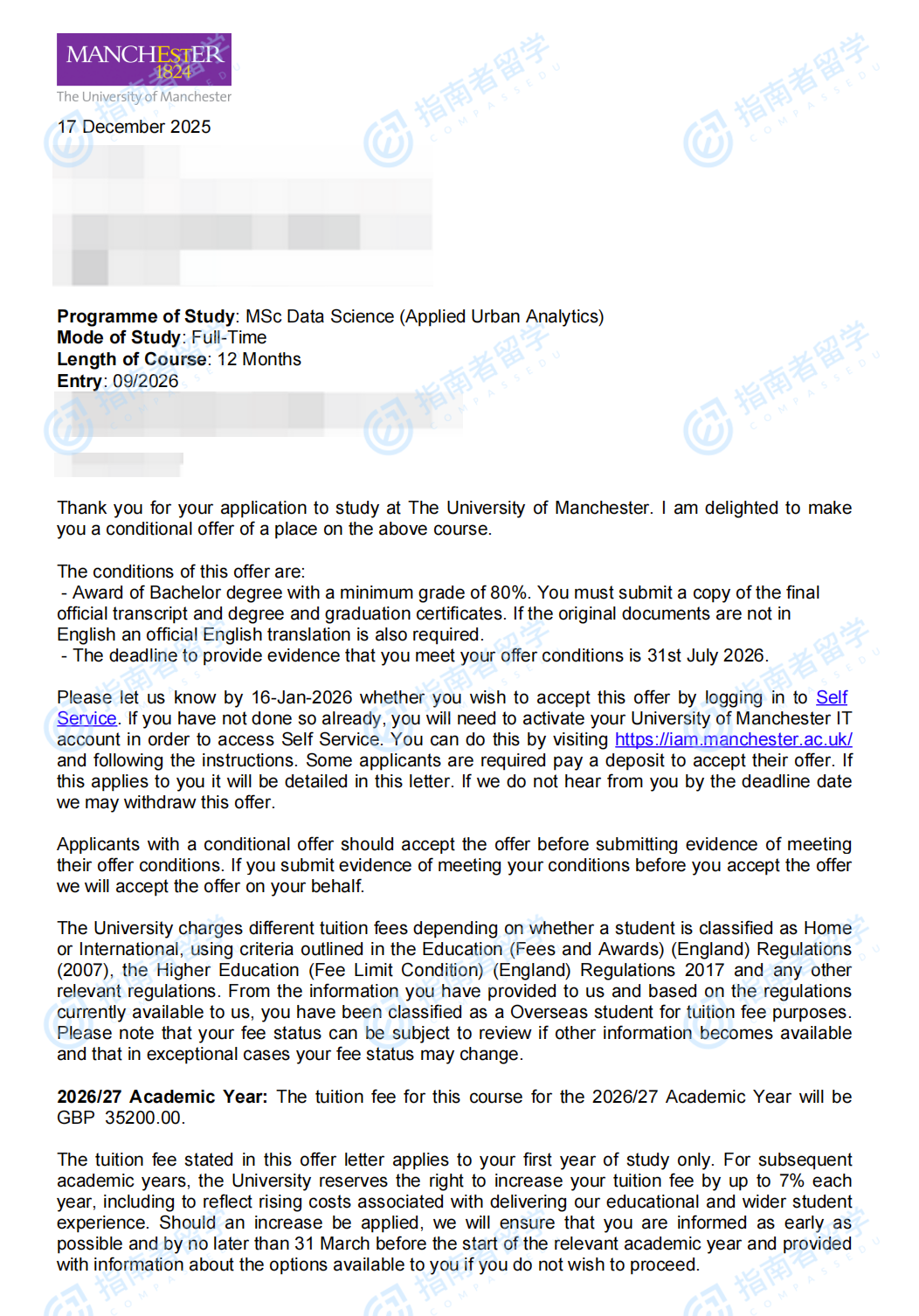 曼徹斯特大學數(shù)據(jù)科學(城市分析)理學碩士研究生offer一枚