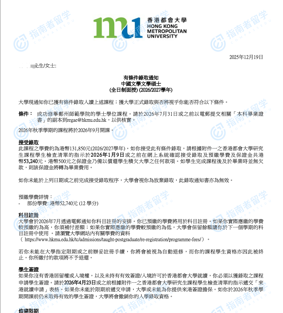 香港都會大學(xué)中國文學(xué)文學(xué)碩士研究生offer一枚