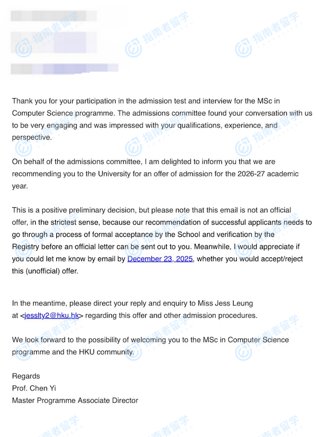 香港大學(xué)計(jì)算機(jī)科學(xué)理學(xué)碩士(常規(guī)方向)研究生offer一枚